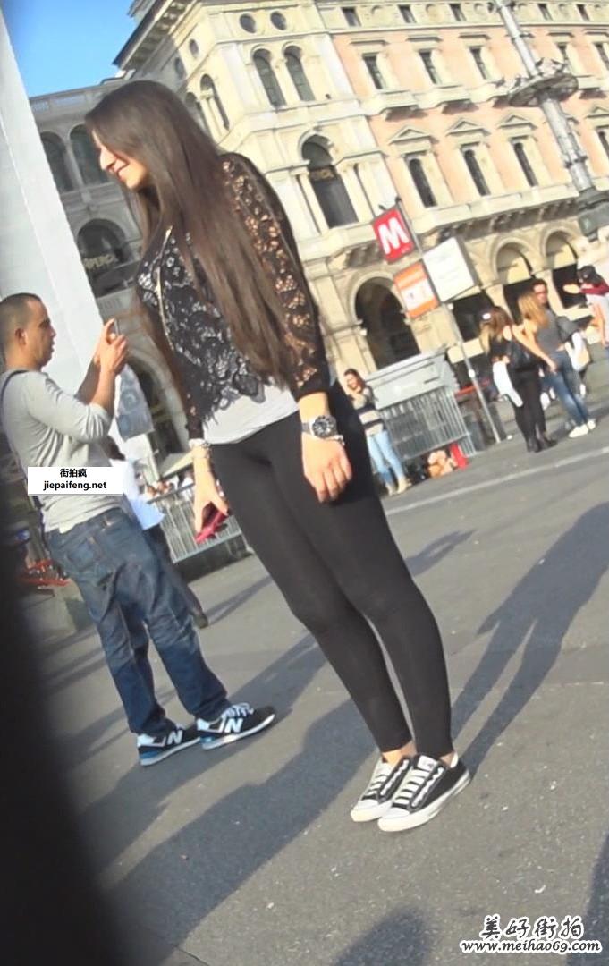 黑色紧身透明打底裤丰臀美眉,可以看见丁字[MP4/194M]