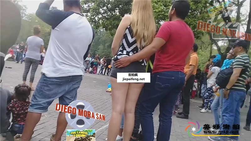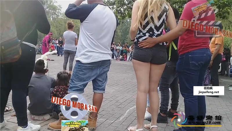 街拍黑色紧绷牛仔热裤金发洋妞性感圆臀[MP4/305M]