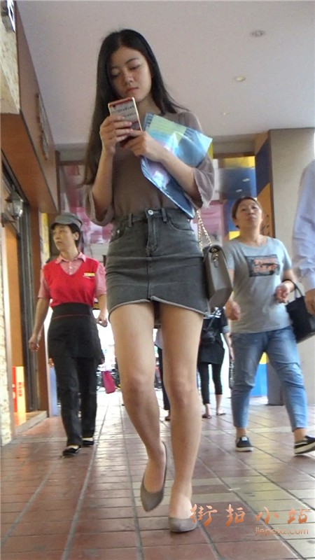 高颜值美腿包臀牛仔裙街拍美女姐姐