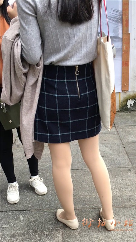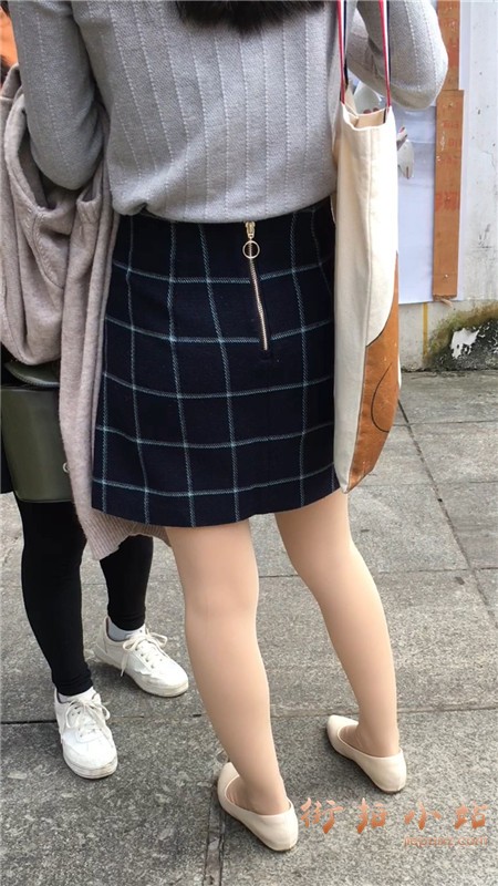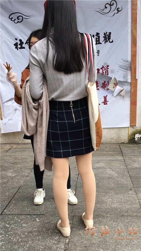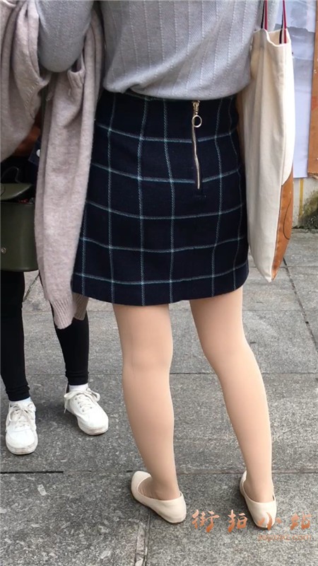 丝袜美腿短裙灰色毛衣街拍美女