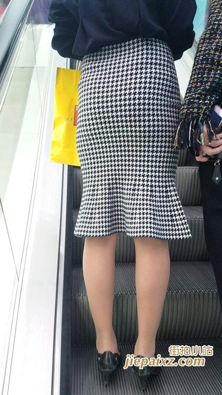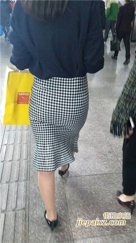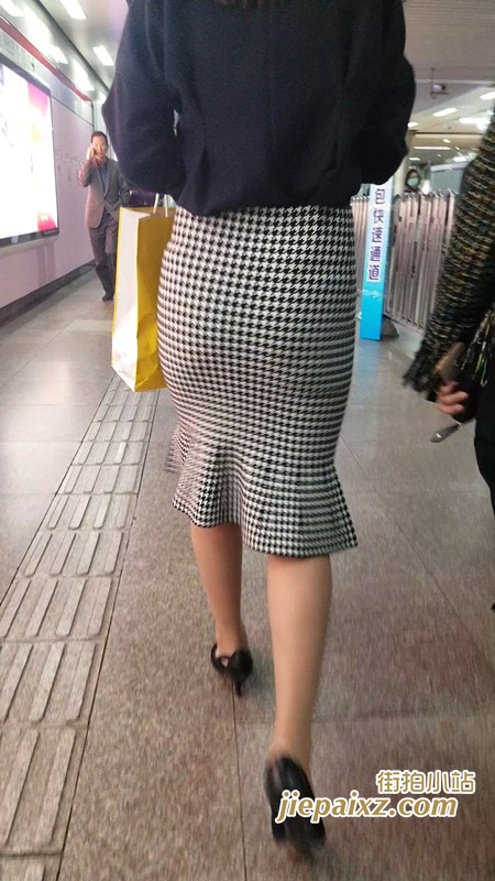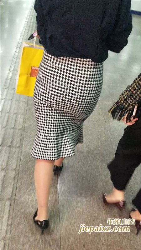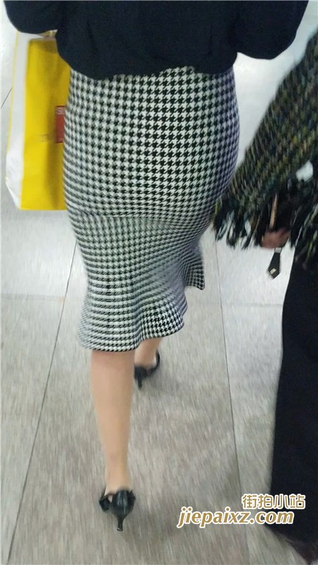 跟拍格子裙高跟鞋街拍圆臀MM