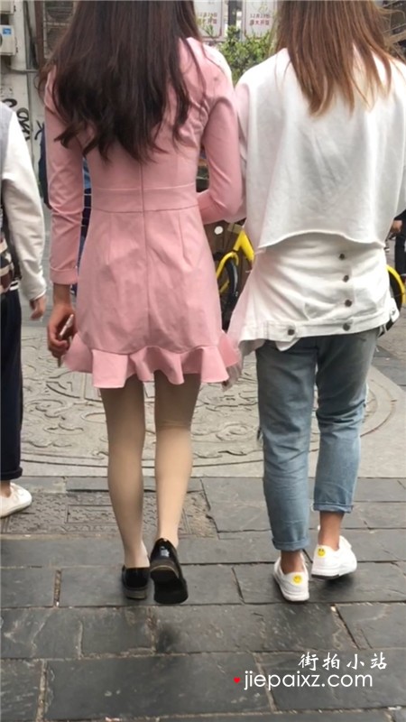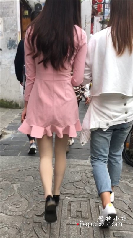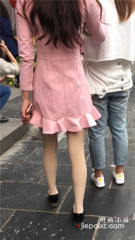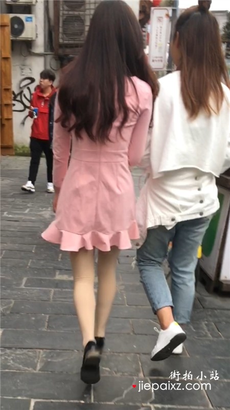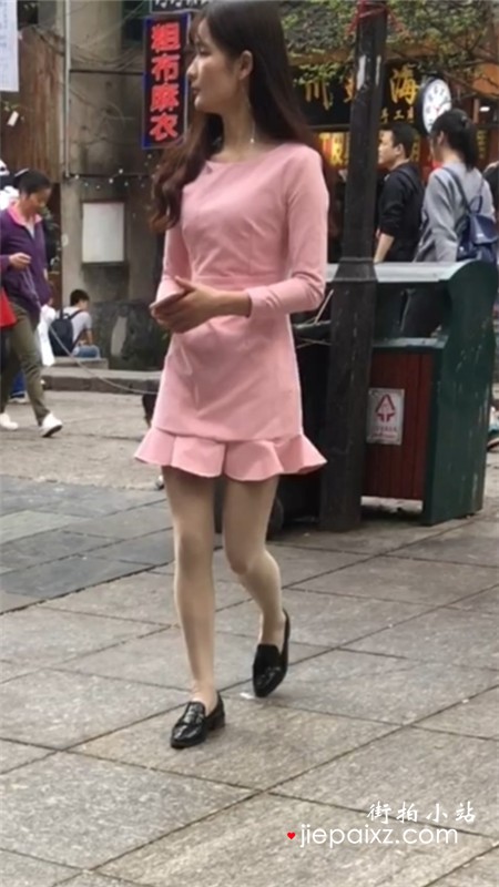 街拍粉色连衣裙漂亮小清新美女姐姐