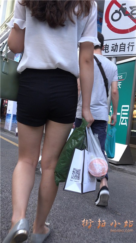 4k-丰臀热裤美腿白色雪纺衫街拍美女