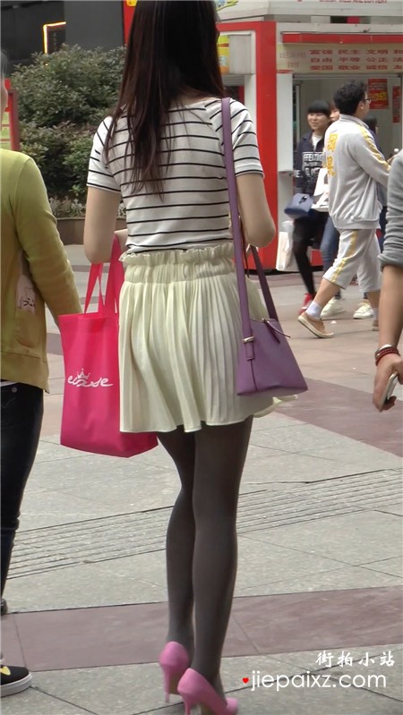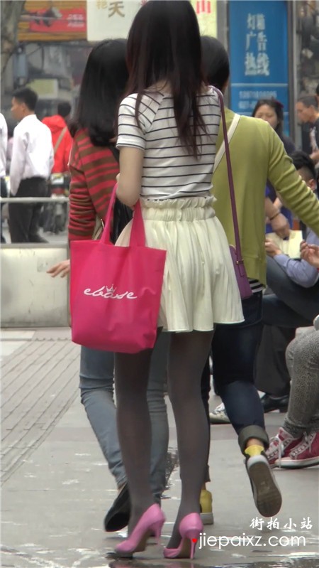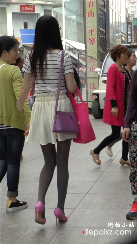 街拍会丝袜粉色高跟鞋美腿漂亮少妇