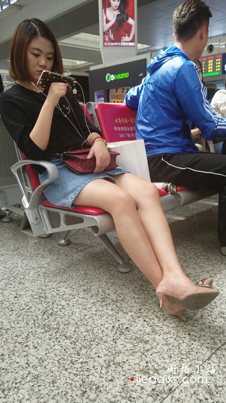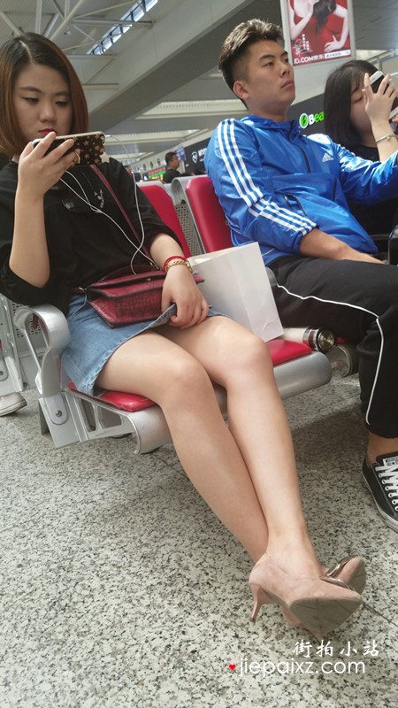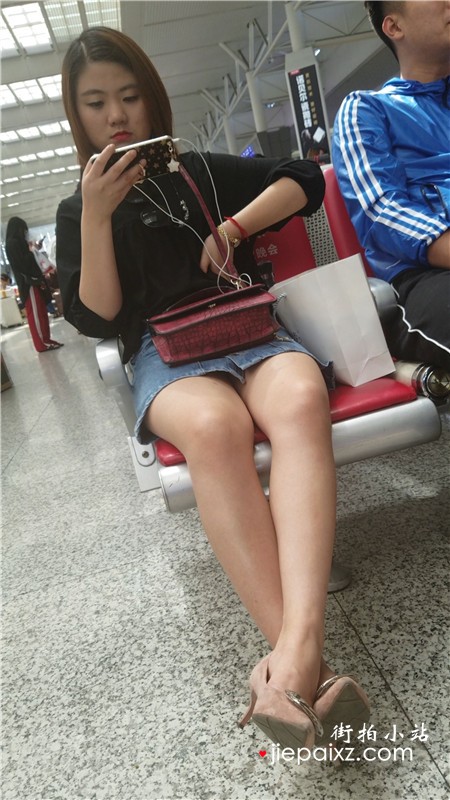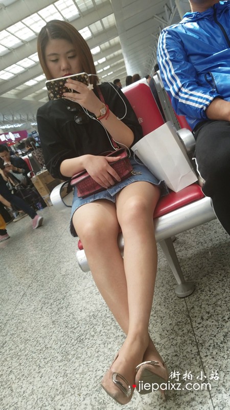 4K - 极品白皙美腿牛仔短裙气质街拍美女、连抠鼻子都这么好看!