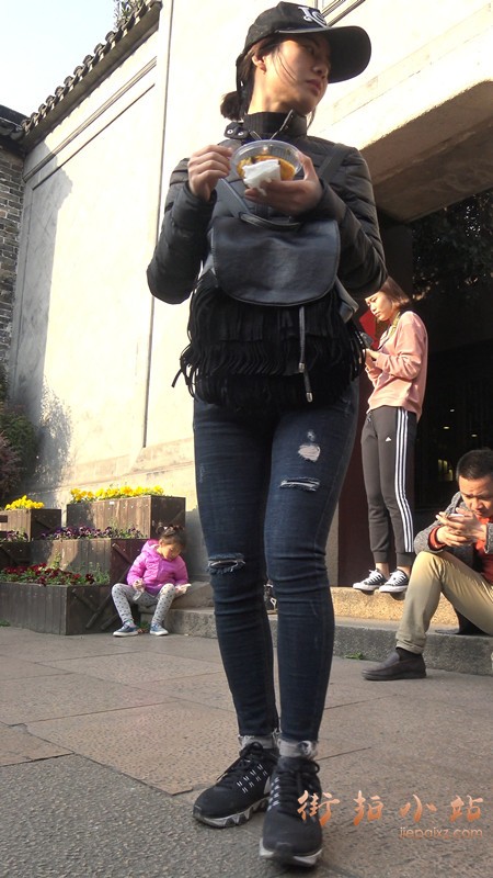 4k-灰色紧身牛仔裤鸭舌帽气质街拍美女