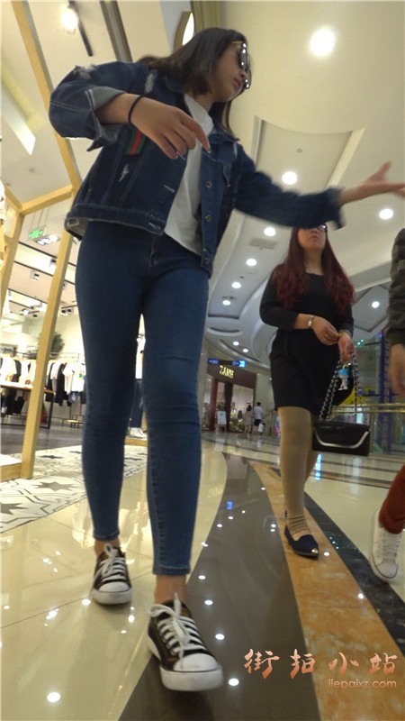 4k-街拍紧身蓝牛帆布鞋长腿小美女