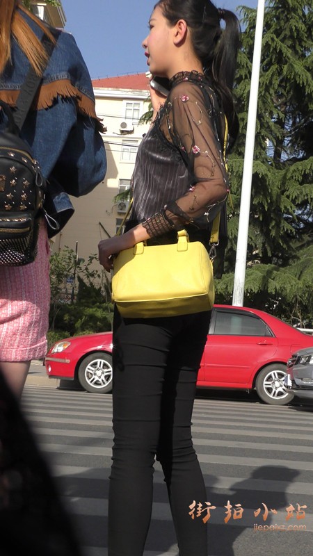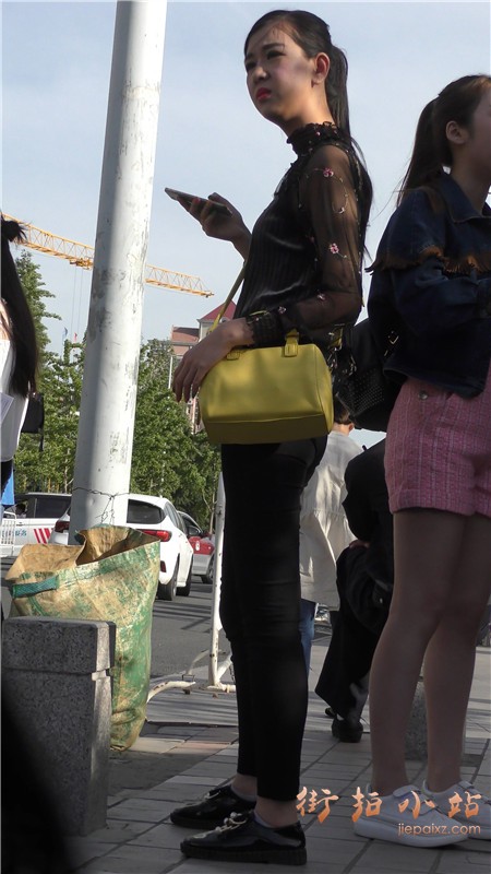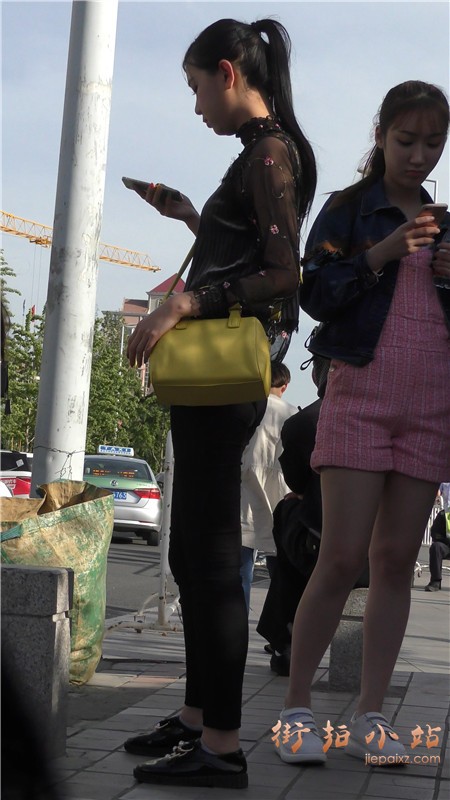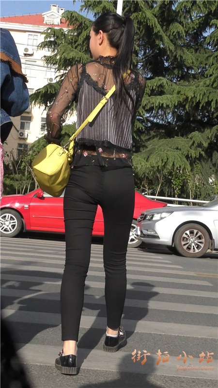 4k-街拍黑色蕾丝衣紧身裤马尾辫漂亮小姐姐