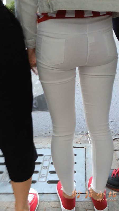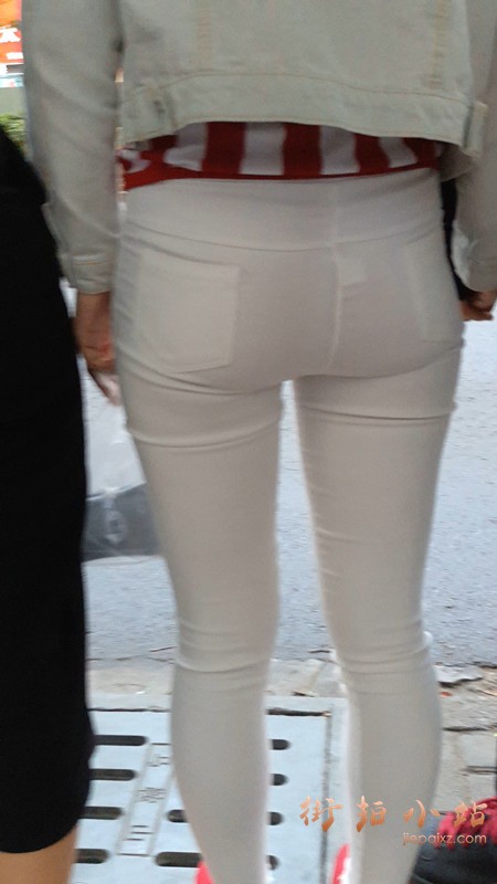 4k-等公交车的超级紧绷白裤街拍美女
