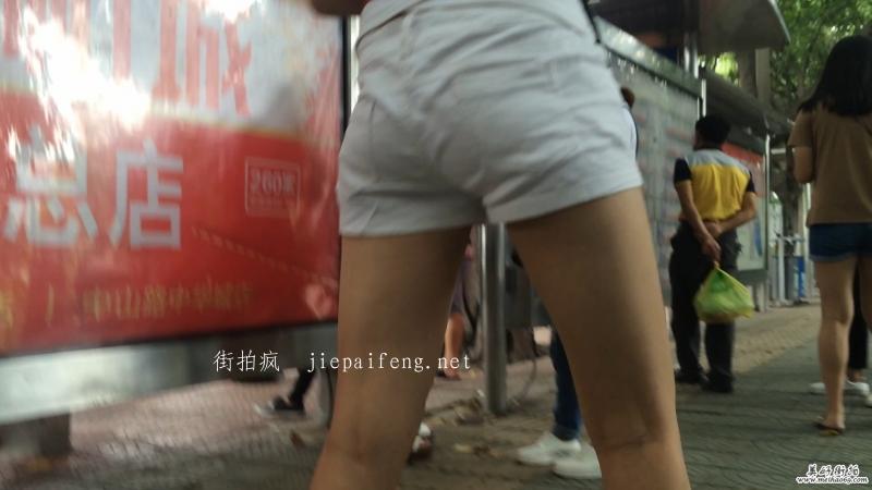 交站台做推销的白色高腰点开长腿翘臀美眉[MOV/14