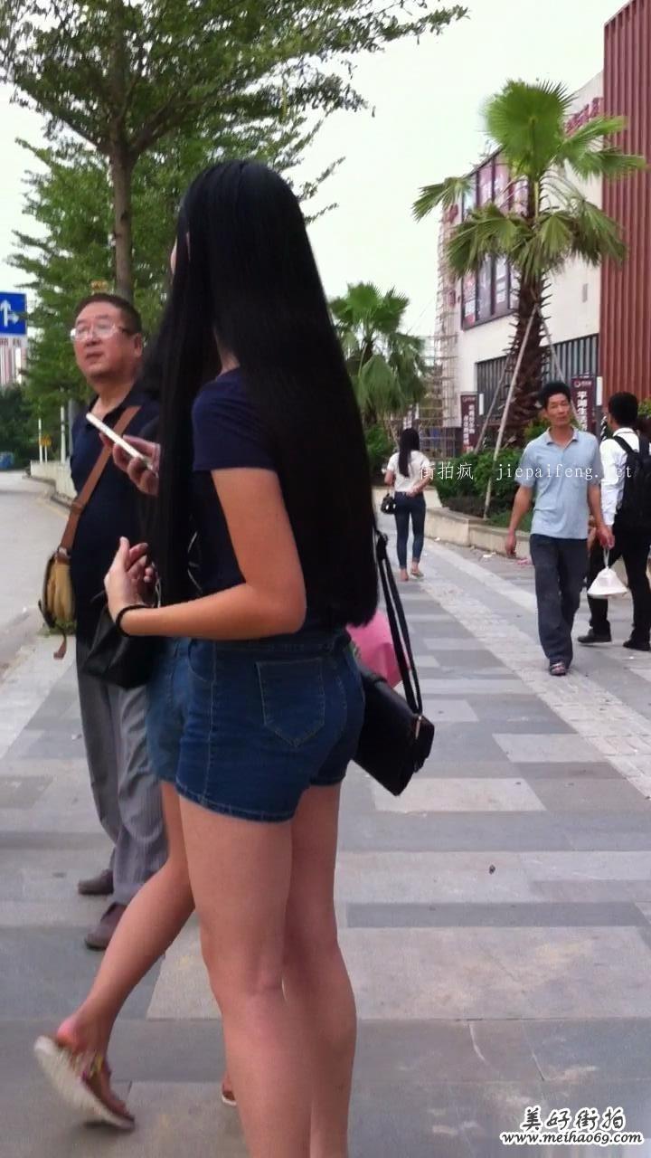 等车的长发束腰蓝牛MM,圆臀明耀夺目[MOV/144M]