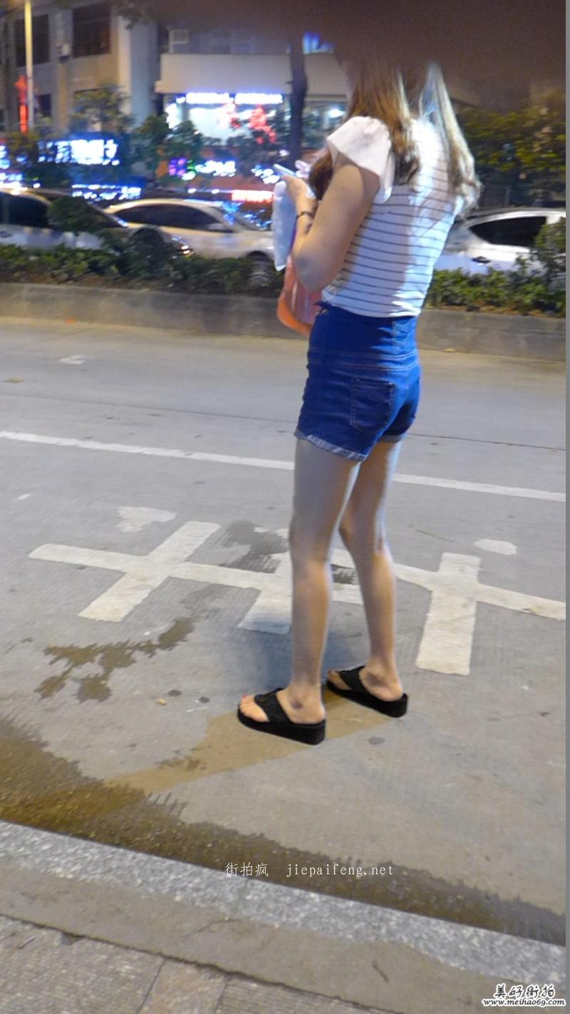 一路跟拍人字拖蓝色牛仔短裤长腿美女[MP4/940M]2