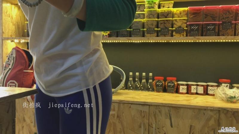 紧身蓝色运动裤性感身材美眉圆润翘臀[MOV/388M]