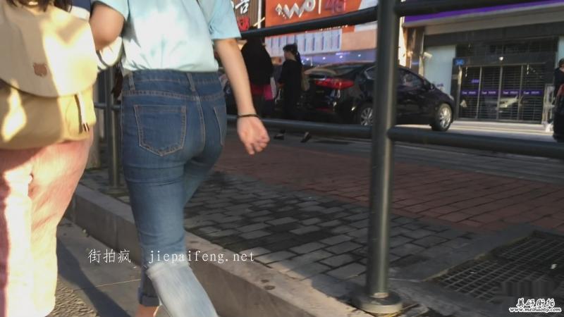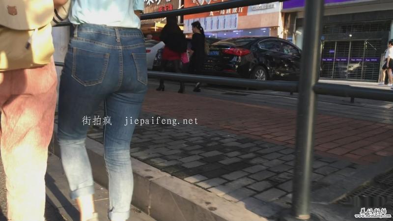 街拍蓝色紧身牛仔裤极品饱满圆润翘臀美眉[MOV/476M]