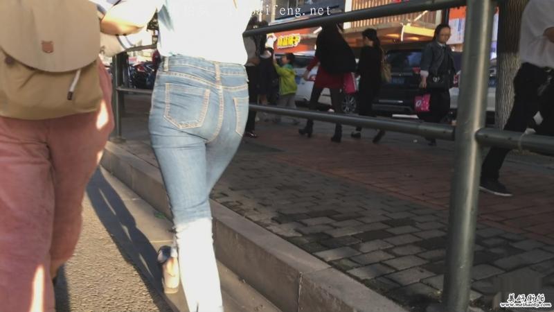 街拍蓝色紧身牛仔裤极品饱满圆润翘臀美眉[MOV/476M]2