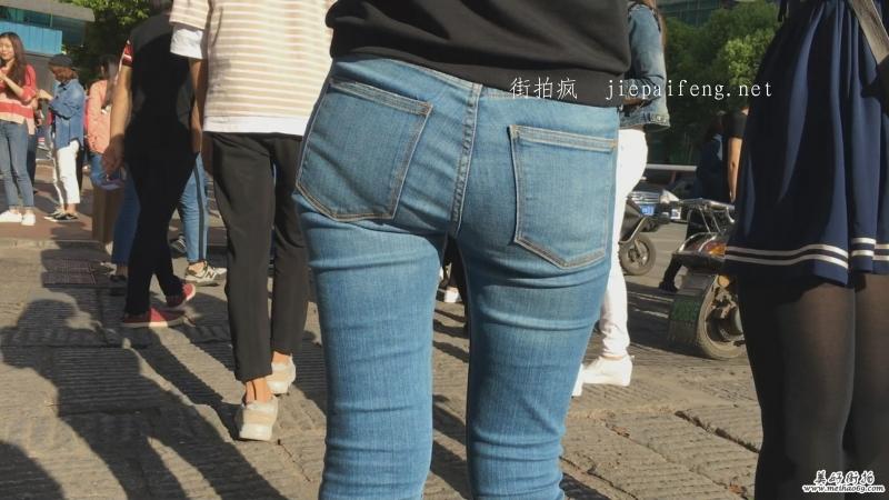 街拍蓝色紧身牛仔裤性感紧臀显内痕美眉[MOV/658M]