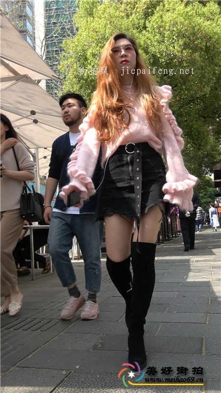 4K-街拍黑色牛仔包臀短裙金发美女极品肉丝长腿[MP4/1.32G]