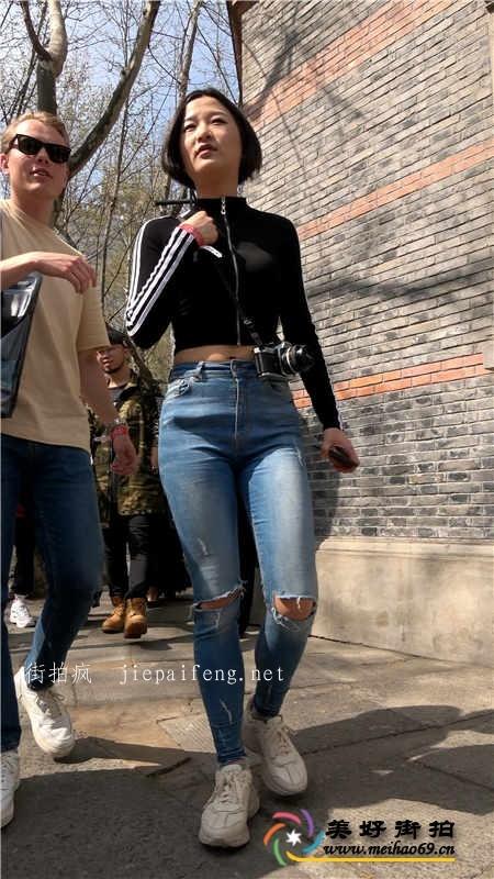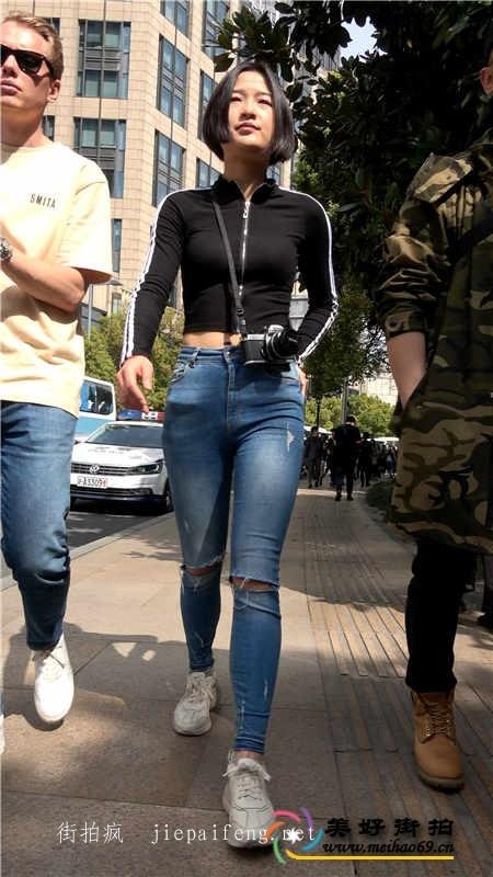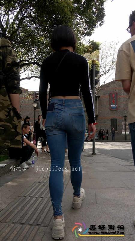 4K-街拍蓝色紧身牛仔裤短发美女性感饱满圆臀 第二季[MP4/778M]