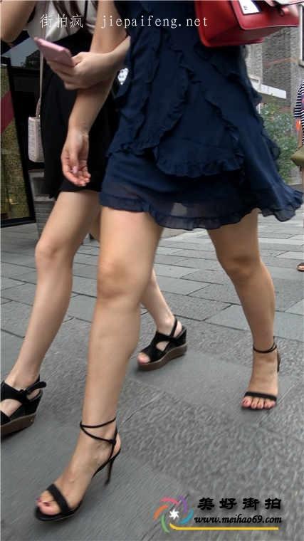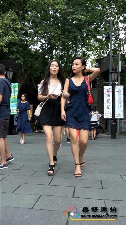 4K-街拍黑色和蓝色连衣短裙两个漂亮OL美女性感白腿[MP4/782M]