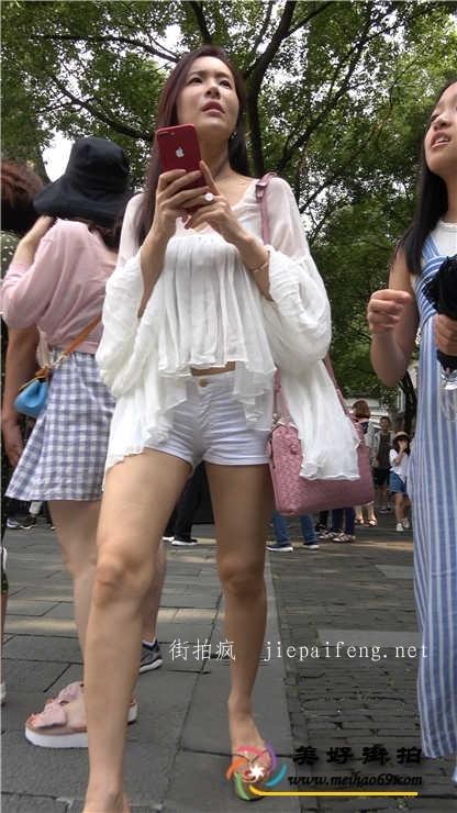 4K-街拍白色紧绷热裤性感白皙长腿高跟美女[MP4/2.26G]