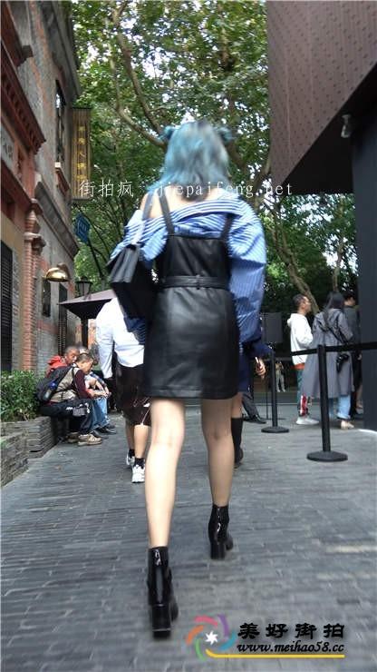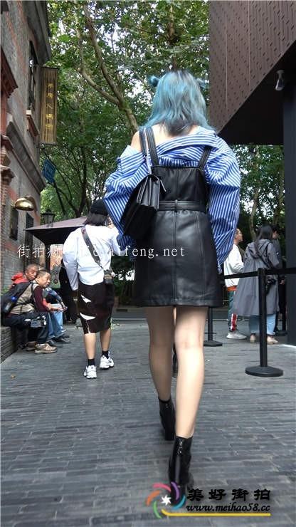 4K-街拍黑色皮短裙白皙长腿高跟美女[MP4/933M]