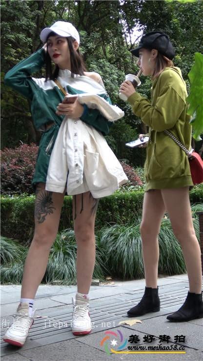 4K-街拍两个长T恤牛仔热裤性感白皙长腿美女[MP4/1G]