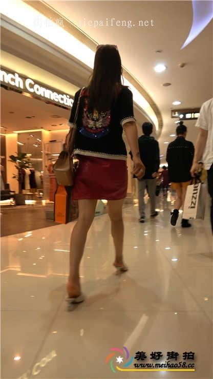 4K-街拍红色包臀皮裙高跟性感身材美腿美少妇[MP4/998M]
