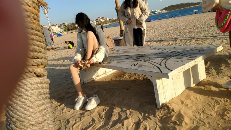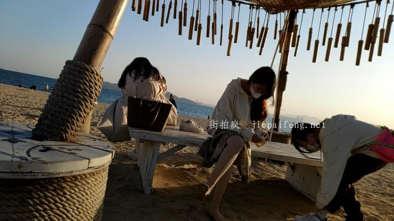 被海水打湿的肉丝街拍美女擦干穿鞋[02:36]