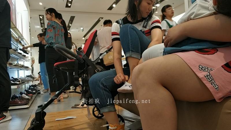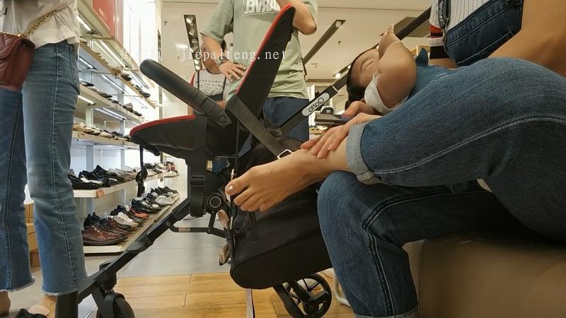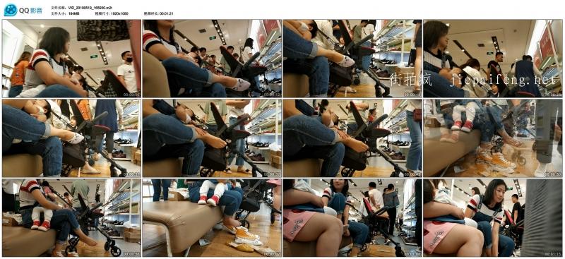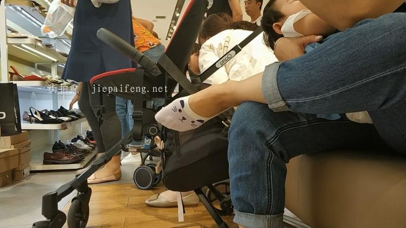 帮姐姐抱孩子的帆布鞋船袜美 女鞋试了一半只能大秀美足[01:21]