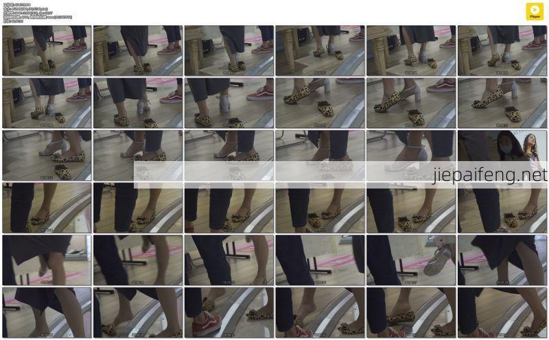 » 4K-鞋柜戴着口罩穿豹纹平底鞋 ROU SI WA 女孩试穿高跟凉鞋