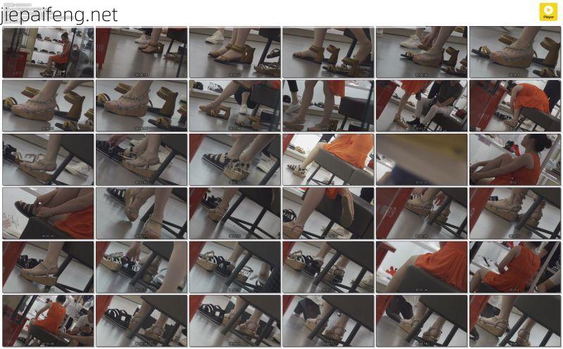 4K-鞋柜穿橘红色连衣裙的 少 女 透明ROU SI WA 试穿凉鞋