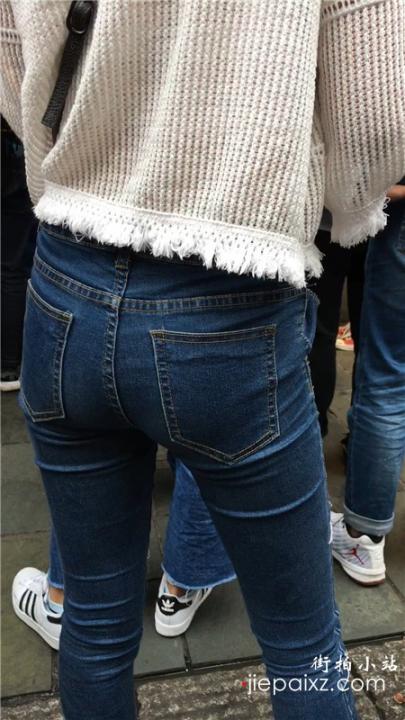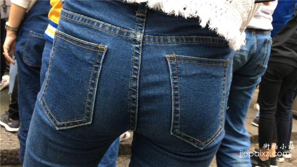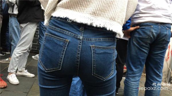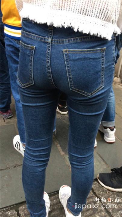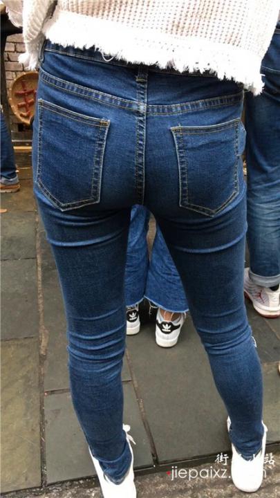 街拍极品紧身蓝色牛仔裤美眉,好臀够紧致