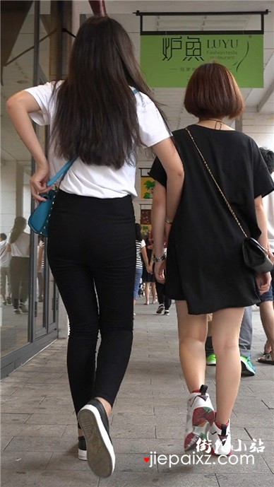 紧身黑裤苹果臀美眉跟闺蜜逛街